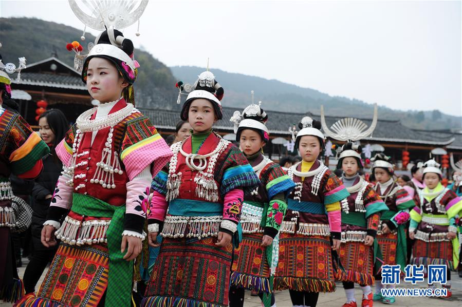 2月24日,在貴州省凱里市舟溪鎮(zhèn),苗族小姑娘身著盛裝跳蘆笙舞。 當(dāng)日,在貴州省黔東南苗族侗族自治州凱里市舟溪鎮(zhèn),來自各地的苗族群眾身著節(jié)日盛裝,歡聚在古老的“甘囊香”蘆笙堂,男子吹奏起蘆笙,姑娘和孩子們跳起蘆笙舞,歡度新春,祈求風(fēng)調(diào)雨順、五谷豐登,青年男女也借此良日尋覓意中人。 “甘囊香”是苗語音譯,意思為“河流的下游,神仙匯聚的地方”?!案誓蚁恪碧J笙會(huì)是貴州規(guī)模最大、最古樸的苗族蘆笙會(huì)之一。 新華社記者楊文斌攝