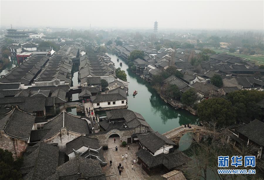 2月25日,游人在烏鎮(zhèn)游覽觀光(無人機(jī)拍攝)。 隨著氣溫升高,浙江省桐鄉(xiāng)市烏鎮(zhèn)景區(qū)春意萌動(dòng)。 新華社記者翁忻旸攝