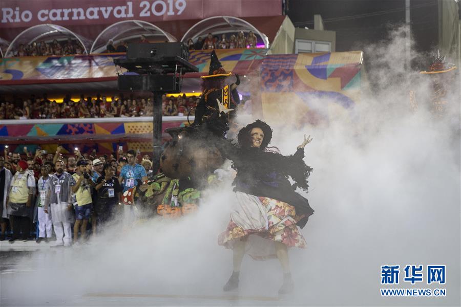 3月3日,在巴西里約熱內盧,特級組桑巴舞校演員參加狂歡節(jié)游行。 3月3日晚,2019年里約熱內盧狂歡節(jié)特級組桑巴舞校在桑巴大道開始花車巡游表演。 新華社記者李明攝