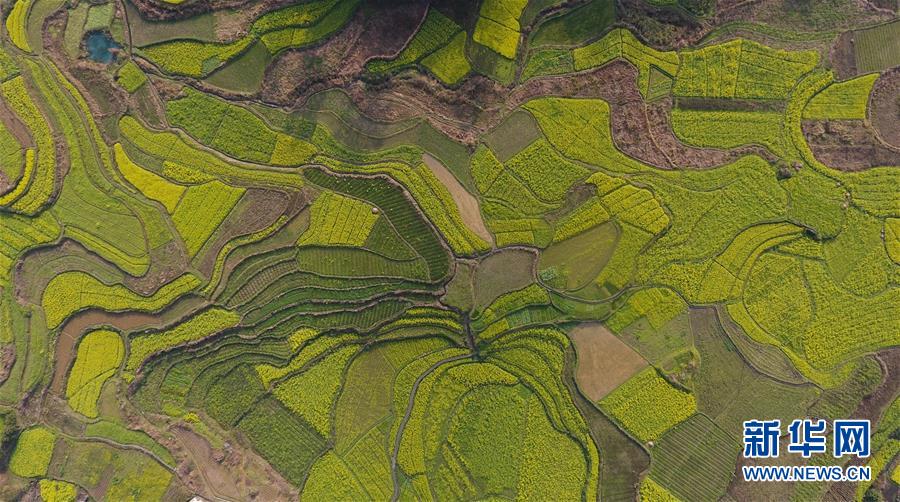 廣西融安縣東起鄉(xiāng)長(zhǎng)豐村的田園春色(3月10日無(wú)人機(jī)拍攝)。 近日,隨著氣溫持續(xù)回升,廣西融安縣境內(nèi)的油菜花開放,春意盎然。 新華社記者 黃孝邦 攝