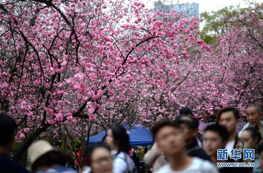 游人在昆明圓通山公園觀賞盛開的櫻花(3月16日攝)。近日,云南省昆明市迎來櫻花盛開的時節(jié)。昆明圓通山公園的數(shù)千株櫻花燦爛綻放,吸引了市民和游客前來觀花賞景。新華社記者藺以光攝