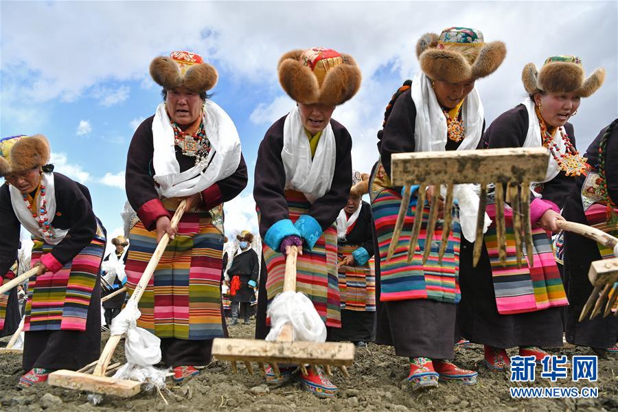 3月16日,山南市乃東區(qū)克松社區(qū)居民在開耕儀式上。 當日,西藏各地男女老幼身著節(jié)日盛裝,駕著一輛輛由彩旗、花朵裝扮一新的拖拉機,涌向待墾的農(nóng)田,載歌載舞迎來一年一度的開耕儀式。 新華社記者 晉美多吉 攝