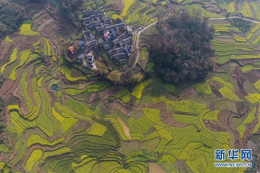 廣西融安縣東起鄉(xiāng)長豐村的田園春色(3月10日無人機拍攝)。 近日,隨著氣溫持續(xù)回升,廣西融安縣境內(nèi)的油菜花開放,春意盎然。 新華社記者 黃孝邦 攝