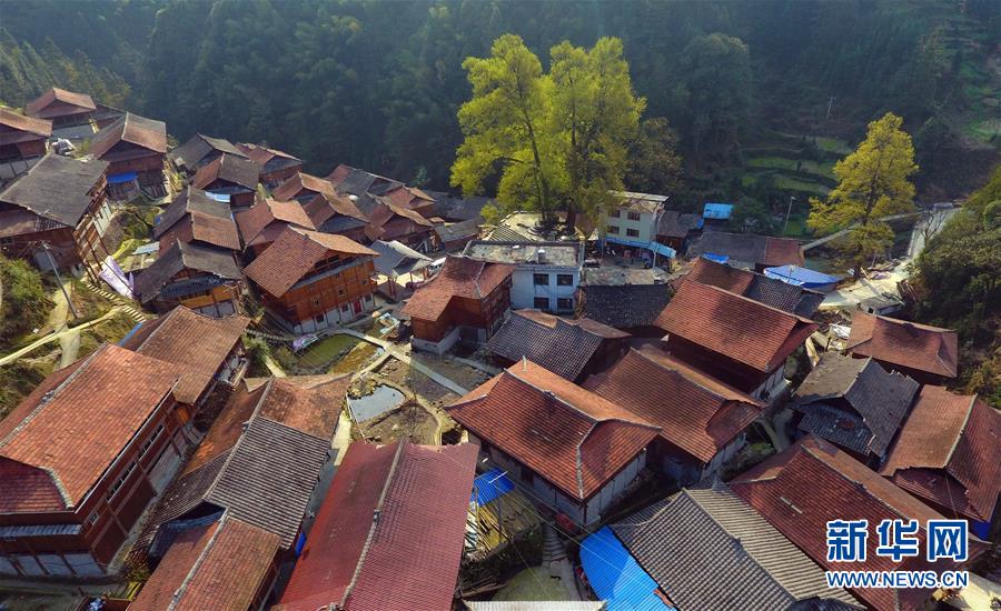 這是黔桂烏英苗寨春色(3月20日無人機拍攝)。