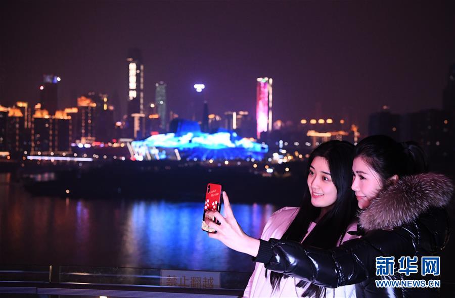游客在重慶市南岸區(qū)街頭合影留念(1月1日攝)。 千里為重,廣大為慶。城在山水間、山水在城中,重慶頗具特色的立體城市景觀是城市靚麗的名片。 新華社記者 王全超 攝