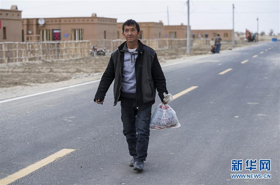 依明在新疆于田縣達(dá)里雅布依小鎮(zhèn)易地扶貧安置點參觀(3月19日攝)。新華社記者 胡虎虎 攝