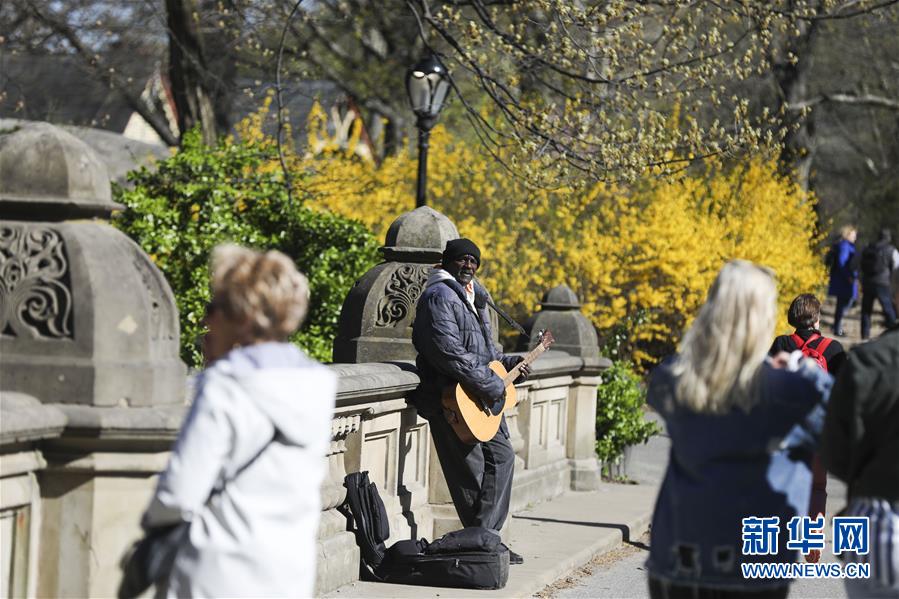 4月16日,一名男子在美國(guó)紐約中央公園唱歌。 新華社記者 王迎 攝