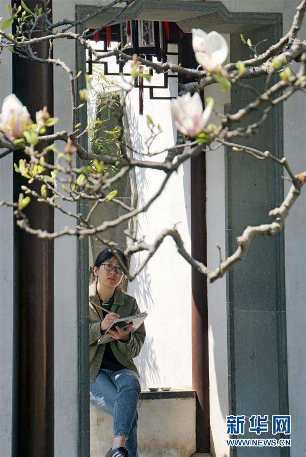 2019年4月1日,游客在中國(guó)蘇州網(wǎng)師園內(nèi)寫(xiě)生。1997年,網(wǎng)師園和拙政園、留園、環(huán)秀山莊被列入聯(lián)合國(guó)教科文組織世界文化遺產(chǎn)名單。 新華社記者杜涓涓攝