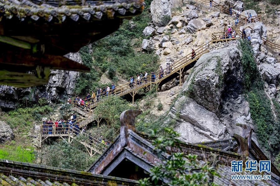 游客在天生三橋景區(qū)游覽(3月27日攝)。 隨著天氣轉(zhuǎn)暖,重慶武隆天生三橋景區(qū)風(fēng)景如畫,氣勢(shì)磅礴的天生石橋和綠意盎然的山林相映成趣,吸引眾多游客前來踏春賞景。 新華社記者劉潺攝