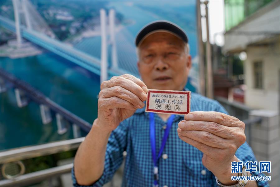 重慶白沙沱長江大橋的建設者孫貽蓀老人展示他保存的架梁工作證(4月23日攝)。 4月23日下午5點40分,隨著重慶白沙沱長江大橋通行的最后一列客運列車順利通過,這座“服役”了59年的重慶首座長江大橋進入“退役”倒計時。4月24日后,所有列車將改線經(jīng)距白沙沱長江大橋約100米的新白沙沱長江特大橋通行,新橋“接力”老橋,運輸能力將得到大幅提升。 白沙沱長江大橋于1958年開工,1960年通過首趟列車,是繼武漢長江大橋之后的第二座長江大橋。 新華社記者 劉潺 攝