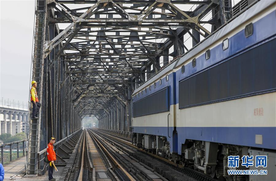 中國鐵路成都局有限公司重慶工務段的巡檢班組在白沙沱長江大橋上等待機車通過后繼續(xù)作業(yè)(4月23日攝)。 4月23日下午5點40分,隨著重慶白沙沱長江大橋通行的最后一列客運列車順利通過,這座“服役”了59年的重慶首座長江大橋進入“退役”倒計時。4月24日后,所有列車將改線經距白沙沱長江大橋約100米的新白沙沱長江特大橋通行,新橋“接力”老橋,運輸能力將得到大幅提升。 白沙沱長江大橋于1958年開工,1960年通過首趟列車,是繼武漢長江大橋之后的第二座長江大橋。 新華社記者 劉潺 攝