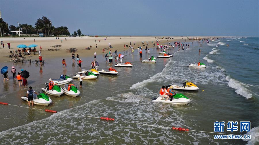 這是游客在北海銀灘游玩(4月18日無人機(jī)拍攝)。 北部灣畔南端的江山半島,76公里海岸線上,昔日沿岸漁村如今“長”出20多個(gè)景區(qū)。每逢節(jié)假日,四面八方的游客將這里堆得人山人海。 近年來,北部灣國際旅游度假區(qū)正成為廣西旅游業(yè)的一顆耀眼明珠。在綠色之海、開放之海理念的指導(dǎo)下,發(fā)展的東風(fēng)掀開這片南疆海域 “面紗”,昔日漁港正變?yōu)闉I海旅游勝地。 新華社記者張愛林?jǐn)z