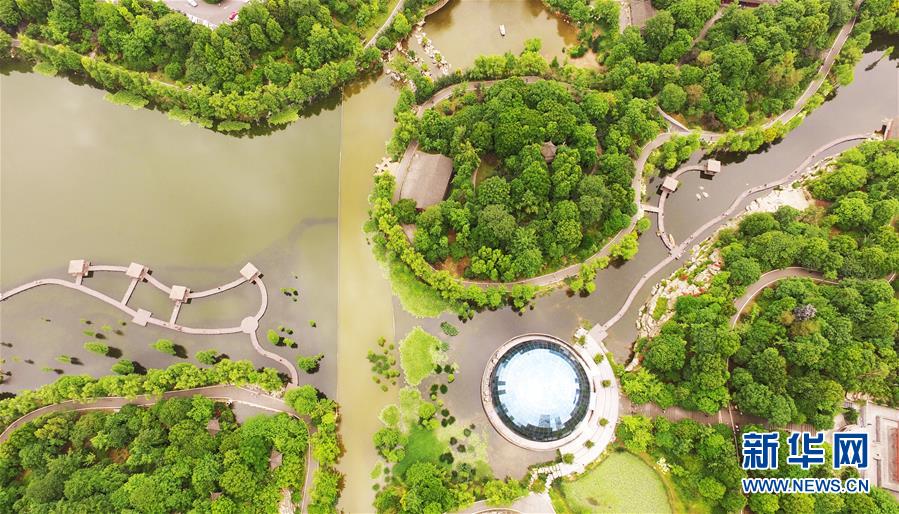 這是5月1日無(wú)人機(jī)拍攝的重慶璧山觀音塘濕地公園景象。新華社記者 王全超 攝