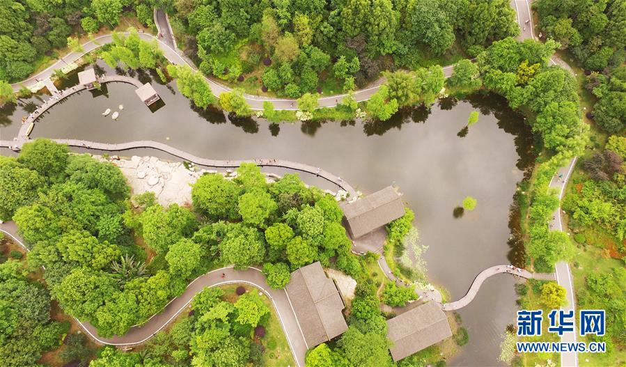 這是5月1日無人機(jī)拍攝的重慶璧山觀音塘濕地公園景象。新華社記者 王全超 攝