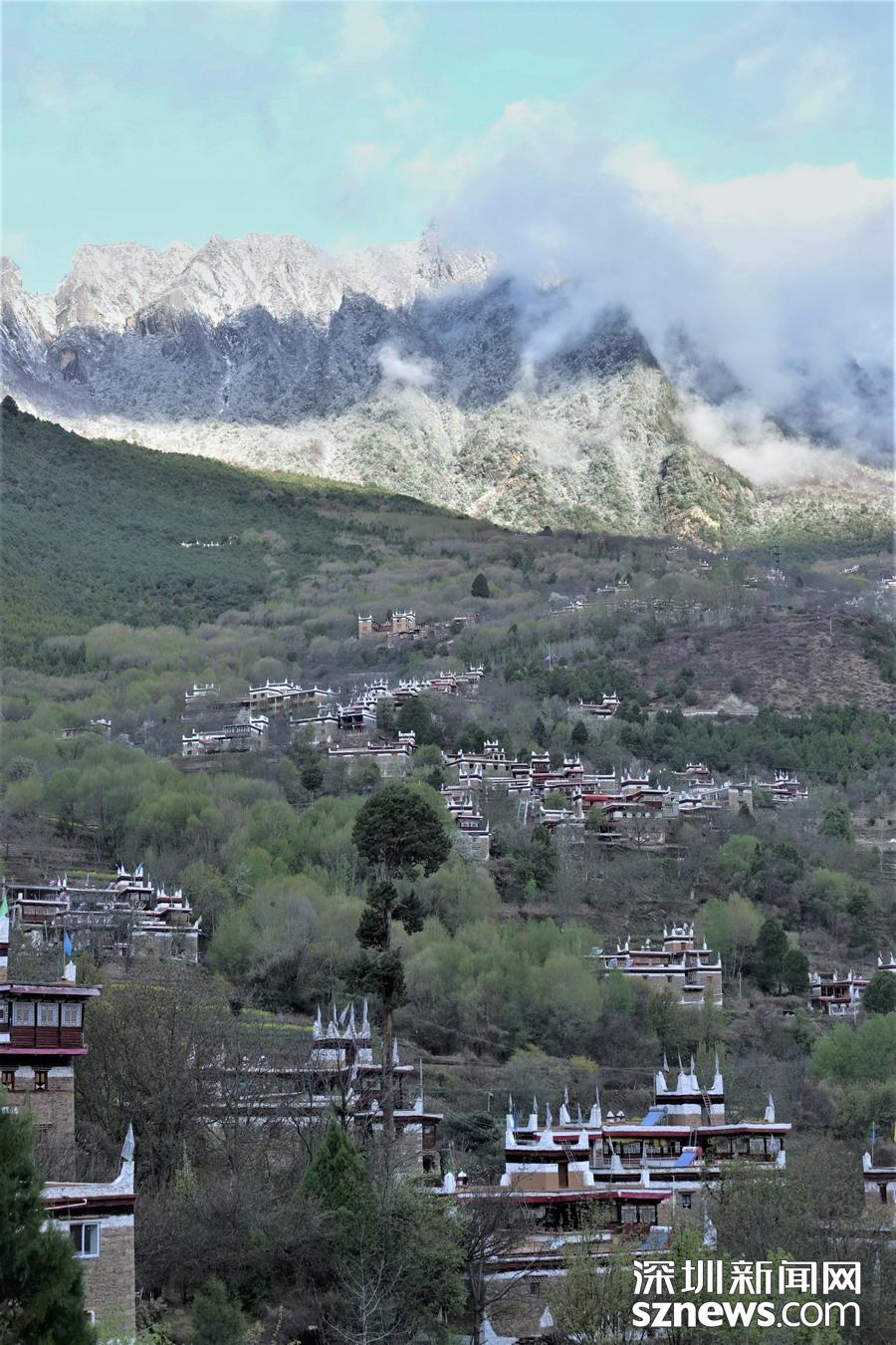“甲居”,藏語(yǔ)是百戶人家之意。甲居藏寨距丹巴縣城約8公里,從大金川河谷層層向上攀緣,一直伸延到卡帕瑪群峰腳下。在相對(duì)高差近千米的山坡上,一幢幢藏式樓房和碉樓灑落在綠樹鮮花叢中,將田園牧歌式的風(fēng)光展示在人們眼前。李仁奇攝