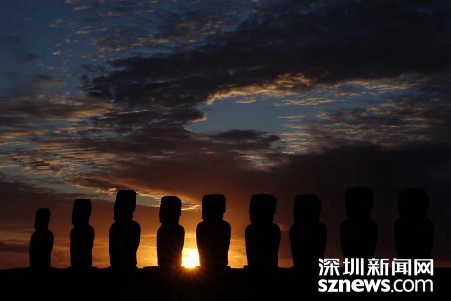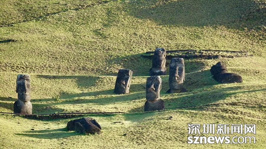 復(fù)活節(jié)島上最著名、最神秘的歷史文明遺跡是巨大的摩艾石像。李仁奇 攝