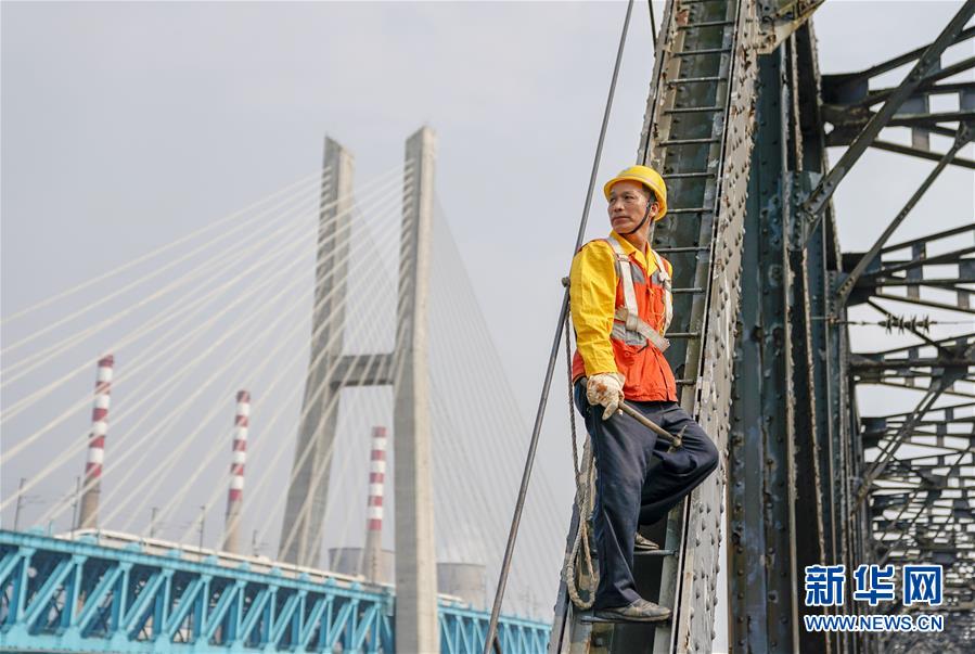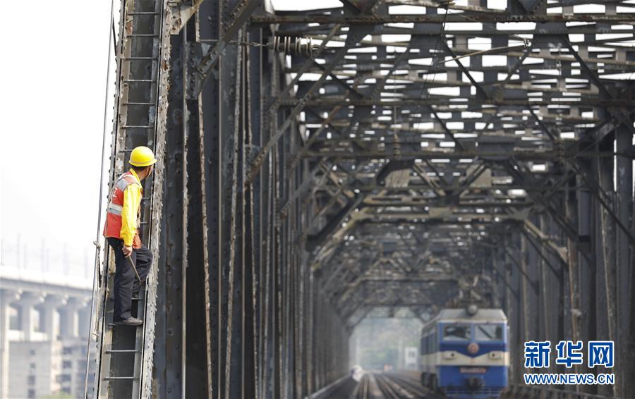 中國(guó)鐵路成都局有限公司重慶工務(wù)段53歲的橋隧工唐金華在白沙沱長(zhǎng)江大橋的鋼架上檢查鋼梁的銹蝕情況(4月23日攝)。 4月23日下午5點(diǎn)40分,隨著重慶白沙沱長(zhǎng)江大橋通行的最后一列客運(yùn)列車(chē)順利通過(guò),這座“服役”了59年的重慶首座長(zhǎng)江大橋進(jìn)入“退役”倒計(jì)時(shí)。4月24日后,所有列車(chē)將改線經(jīng)距白沙沱長(zhǎng)江大橋約100米的新白沙沱長(zhǎng)江特大橋通行,新橋“接力”老橋,運(yùn)輸能力將得到大幅提升。 白沙沱長(zhǎng)江大橋于1958年開(kāi)工,1960年通過(guò)首趟列車(chē),是繼武漢長(zhǎng)江大橋之后的第二座長(zhǎng)江大橋。 新華社記者 劉潺 攝