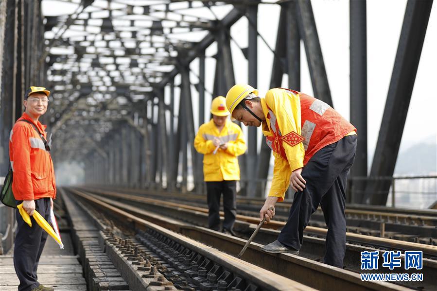 中國鐵路成都局有限公司重慶工務段的巡檢班組在白沙沱長江大橋上進行巡檢作業(yè)(4月23日攝)。 4月23日下午5點40分,隨著重慶白沙沱長江大橋通行的最后一列客運列車順利通過,這座“服役”了59年的重慶首座長江大橋進入“退役”倒計時。4月24日后,所有列車將改線經距白沙沱長江大橋約100米的新白沙沱長江特大橋通行,新橋“接力”老橋,運輸能力將得到大幅提升。 白沙沱長江大橋于1958年開工,1960年通過首趟列車,是繼武漢長江大橋之后的第二座長江大橋。 新華社記者 劉潺 攝