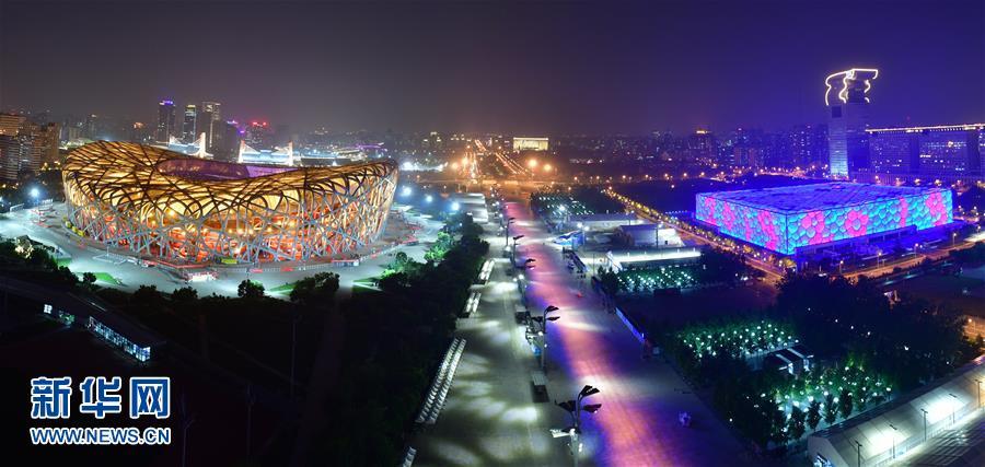 5月14日,“鳥巢”和“水立方”燈光璀璨。 當(dāng)晚,一場“空間光影秀”在北京上演。 新華社記者 李賀 攝