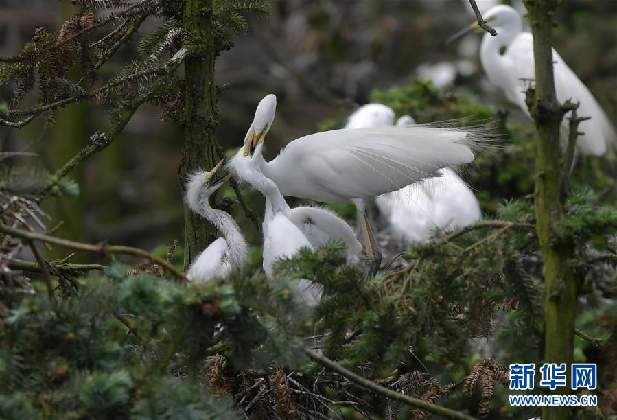 在江西省南昌市新建區(qū)象山森林公園內(nèi),白鷺和自己的雛鳥(niǎo)在一起(5月21日攝)。 近日,在江西省南昌市新建區(qū)象山森林公園內(nèi),已安家筑巢的大批鷺鳥(niǎo)陸續(xù)孵化出了后代。象山森林公園有著“鷺鳥(niǎo)王國(guó)”的美譽(yù),生態(tài)環(huán)境良好,每年都會(huì)吸引白鷺、蒼鷺、夜鷺等種類的鷺鳥(niǎo)飛抵棲息和繁衍后代。 新華社記者 彭昭之 攝