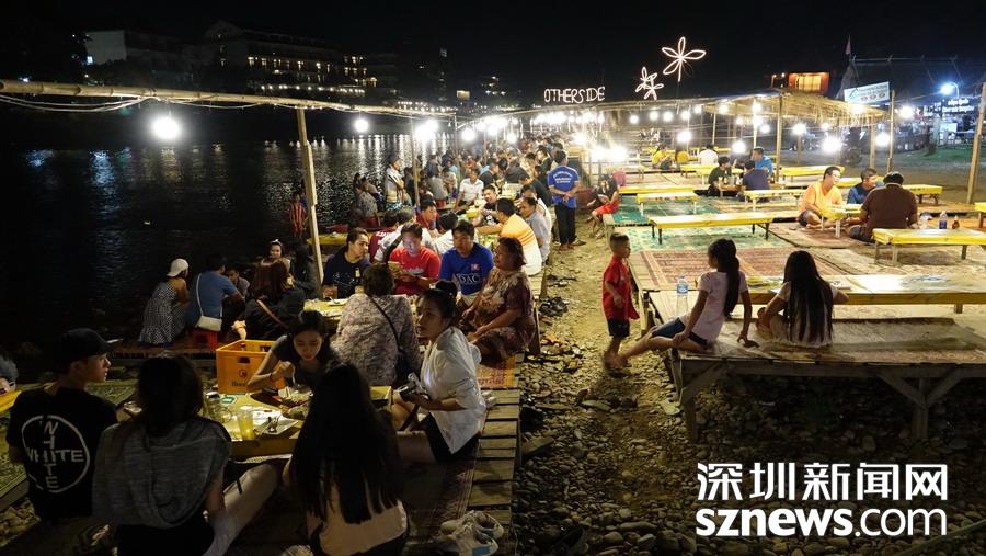 萬榮的開放程度很高。夜晚,南松河畔、街道兩旁都是酒吧,常常可以看到漂流回來身著泳裝的“老外”當(dāng)街站立。李仁奇 攝