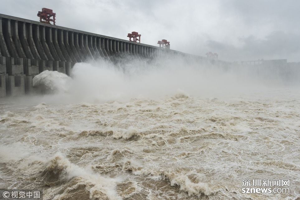 深圳新聞網(wǎng)訊  2018年7月5日,三峽大壩今年首次開閘泄洪。當(dāng)天,三峽大壩開啟5個(gè)泄洪孔下泄洪水,至中午12點(diǎn)左右減至2個(gè)。
