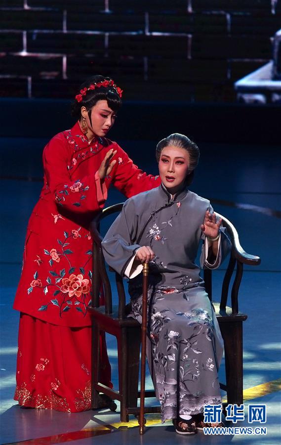 6月2日,蘇州市蘇劇傳習(xí)保護(hù)中心演員在第十二屆中國(guó)藝術(shù)節(jié)閉幕式上匯報(bào)演出獲得文華大獎(jiǎng)的蘇劇《國(guó)鼎魂》選段。 新華社記者 任瓏 攝