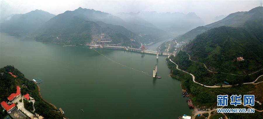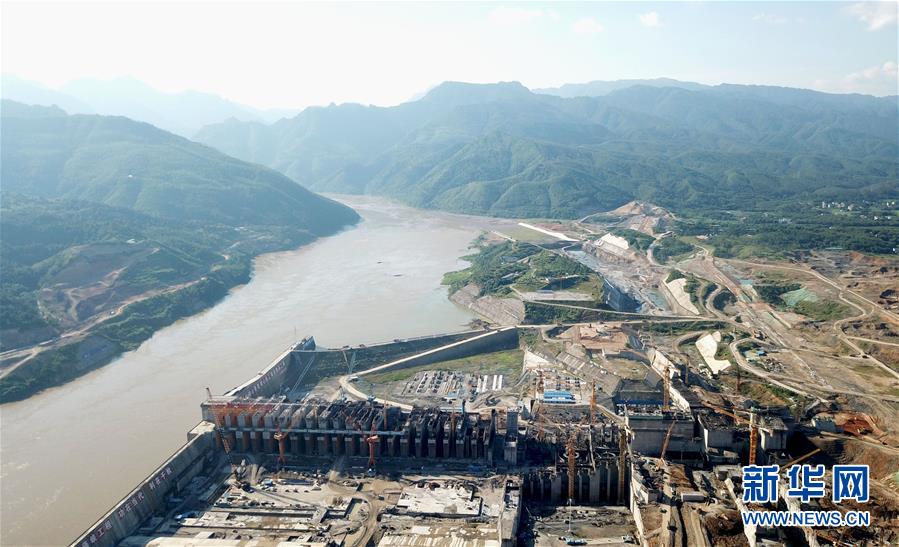 這是用無人機拍攝的建設(shè)中的烏東德水電站全景(5月30日攝)。 新華社記者陳曄華攝