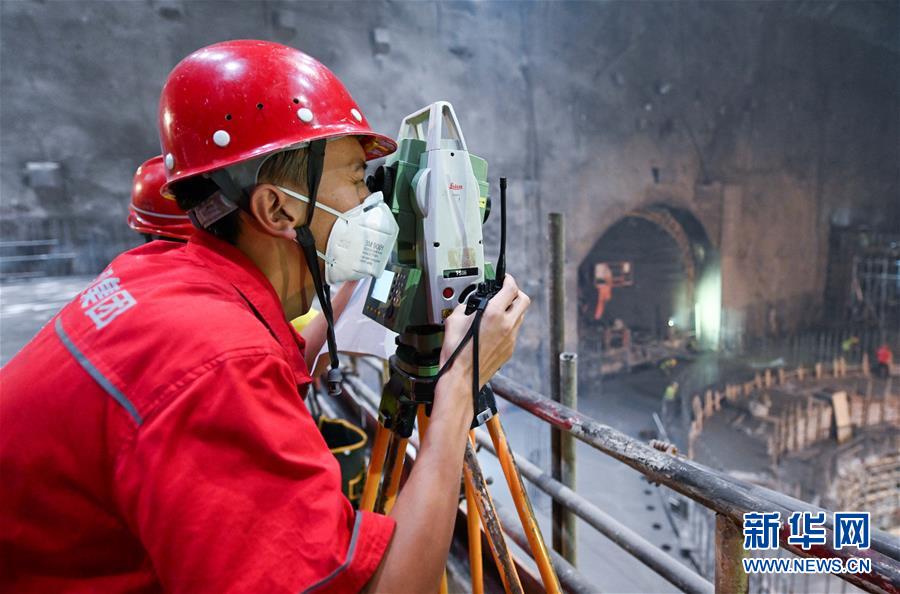 這是烏東德水電站泄洪洞中的鋼模臺車施工現(xiàn)場(5月31日攝)。 新華社記者陳曄華攝