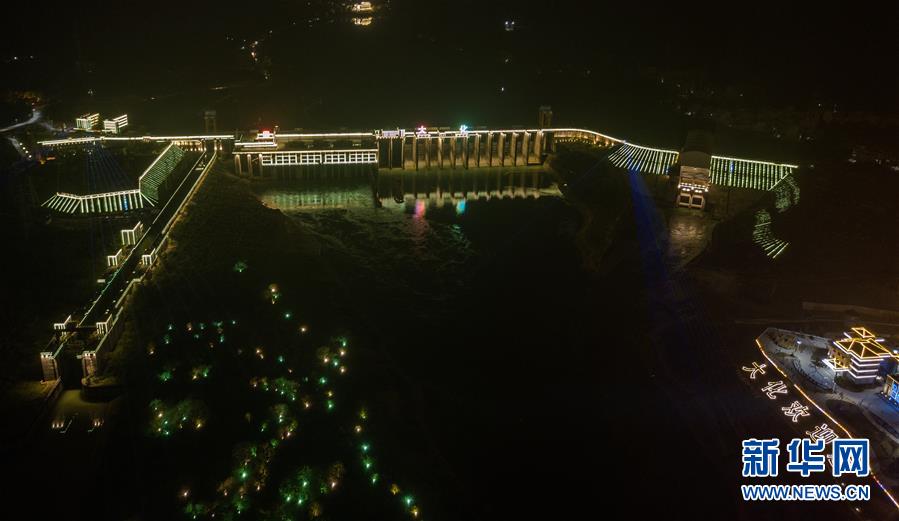 這是位于廣西大化縣境內(nèi)的大化水電站夜景(10月21日無人機拍攝)。廣西紅水河是我國十二大水電基地之一,目前建有天生橋一級、天生橋二級、平班、龍灘、巖灘、大化、百龍灘、樂灘、橋鞏、大藤峽10個大型梯級電站及下游西江上的長洲水利樞紐。這些水電站既是我國“西電東送”的主力軍之一,又對珠三角地區(qū)遠離洪災侵襲有著重要的調(diào)節(jié)功能。近期,新華社記者用無人機從空中俯瞰這些水電基地群,呈現(xiàn)它們的別樣之美。新華社記者 張愛林 攝