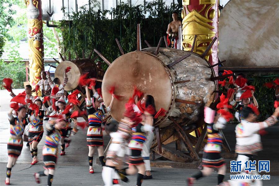 基諾族演員在表演大鼓舞(6月1日攝)。 在云南省西雙版納傣族自治州景洪市基諾山基諾族鄉(xiāng)的基諾族村寨,每天的基諾大鼓舞表演吸引了眾多游客前來觀賞體驗(yàn),帶動(dòng)了基諾族群眾就業(yè)和增收。基諾族大鼓舞蘊(yùn)涵豐富的歷史文化內(nèi)涵,已被列入國家級(jí)非物質(zhì)文化遺產(chǎn)保護(hù)名錄。 新華社記者 楊宗友 攝