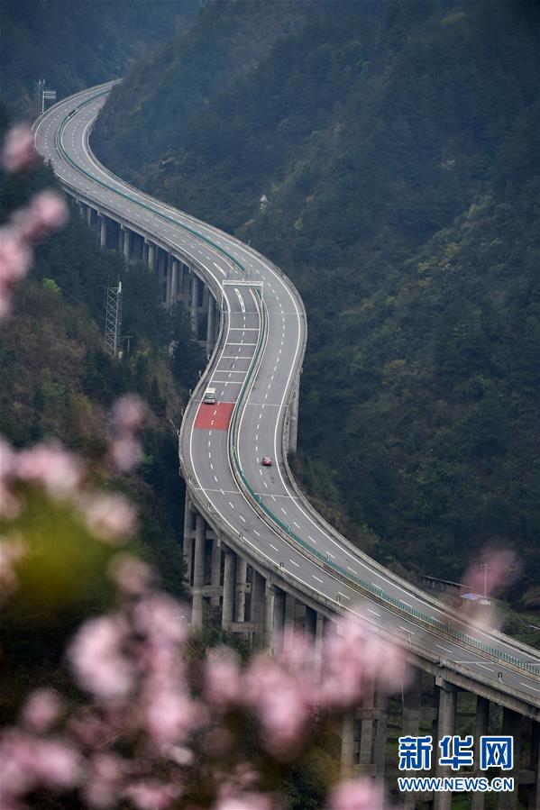 貴州思劍高速公路劍河縣岑松鎮(zhèn)段的春季景觀(3月23日攝)。陽春時節(jié),貴州思(南)劍(河)高速公路劍河縣岑松鎮(zhèn)附近的桃花和梨花陸續(xù)開放。 新華社記者楊文斌攝