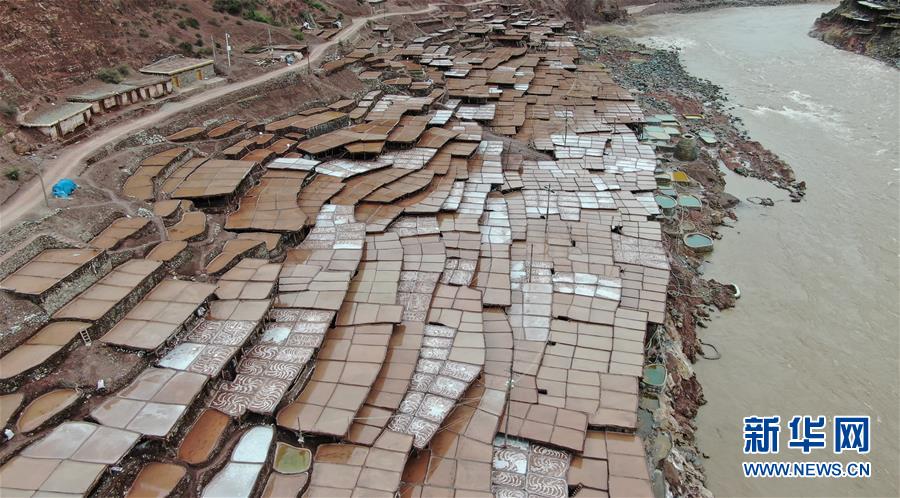 這是位于瀾滄江畔的西藏芒康縣納西民族鄉(xiāng)加達(dá)村的鹽田(6月4日無人機(jī)拍攝)。新華社記者晉美多吉攝