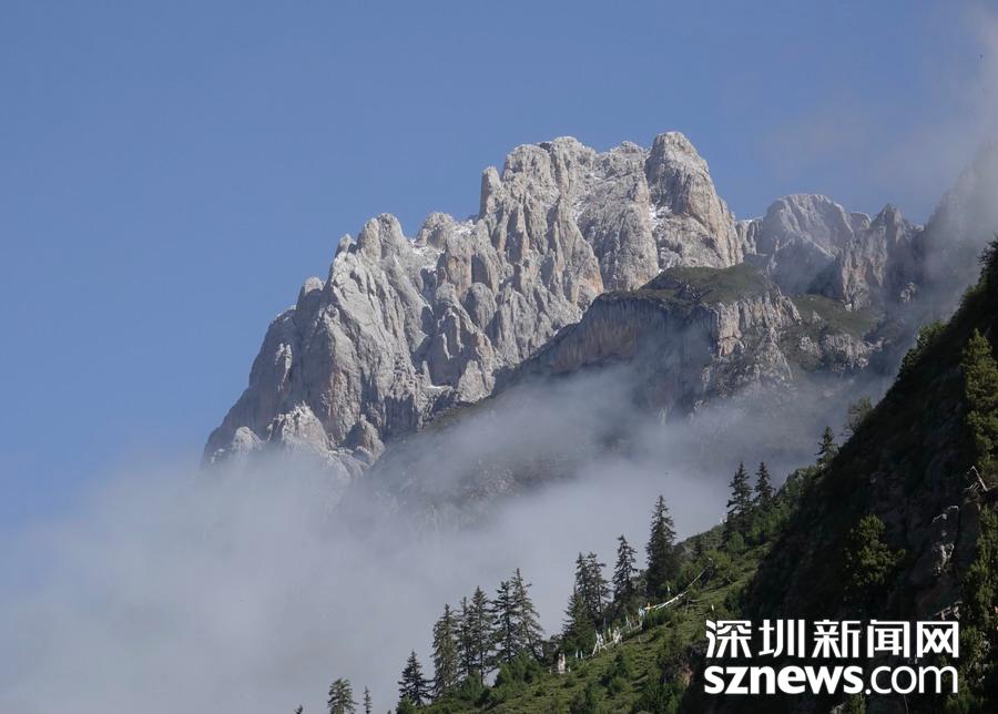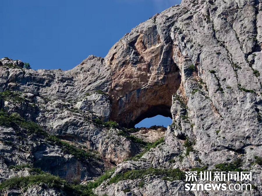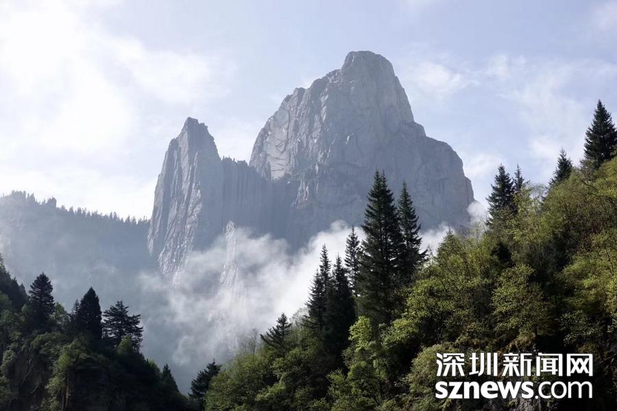 乘坐通往核心景區(qū)的旅游車進(jìn)入臨近壯觀山體的地段,從獨(dú)特的角度看到了云霧繚繞的山峰,真有置身仙境的感覺。李仁奇攝