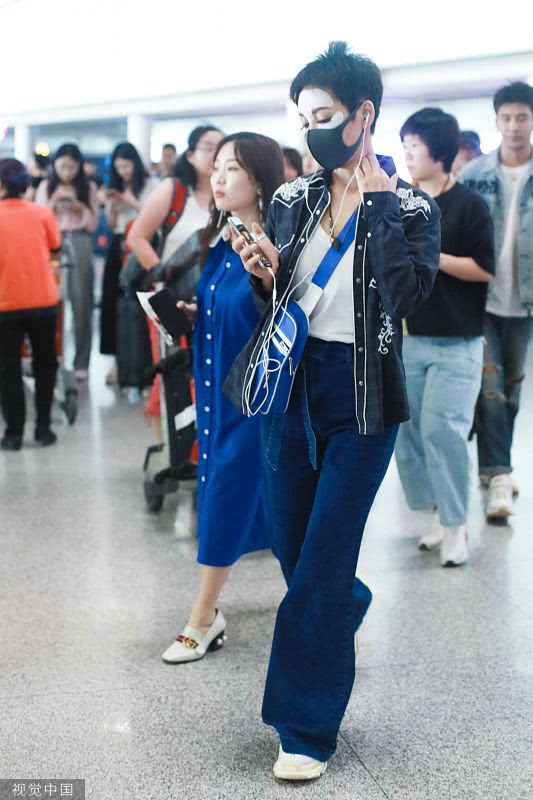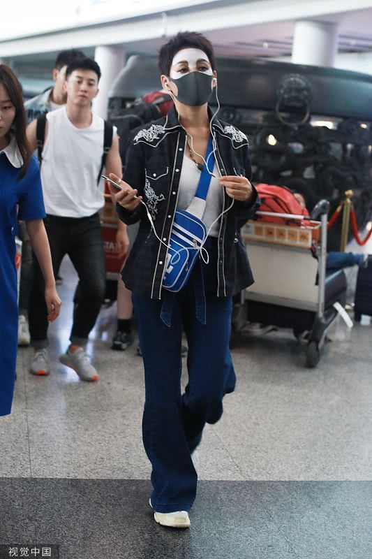 2019年6月19日,北京,寧靜現(xiàn)身機場。她穿敷面膜亮相短發(fā)干練個性灑脫,戴口罩對鏡揮手大方任拍。