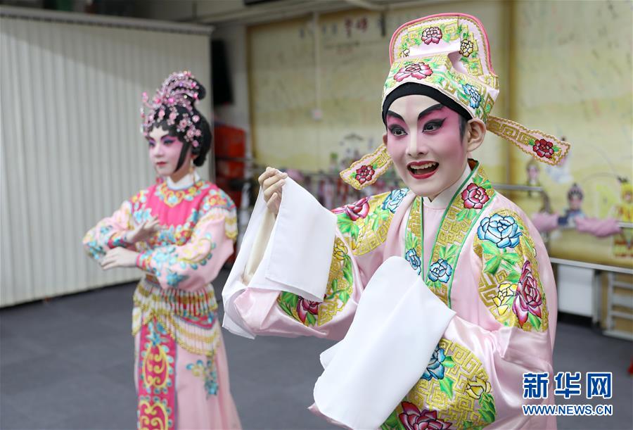 陸瑞徽(左)和利文喆在表演折子戲《艷曲醉周郎》(6月8日攝)。 聲輝粵劇推廣協(xié)會成立于2003年,是香港重要粵劇藝術團體之一,致力于向青少年推廣粵劇。協(xié)會目前有兩個初班,3個中班,一個青少年班?;泟∮址Q“廣東大戲”,表演技藝包括“唱做念打”,即唱功、身段、臺詞、武打,主要流行于廣東、廣西和香港、澳門等地區(qū)。2009年,粵劇被列入聯(lián)合國教科文組織人類非物質(zhì)文化遺產(chǎn)代表作名錄,今年正逢十周年。 新華社記者 吳曉初 攝