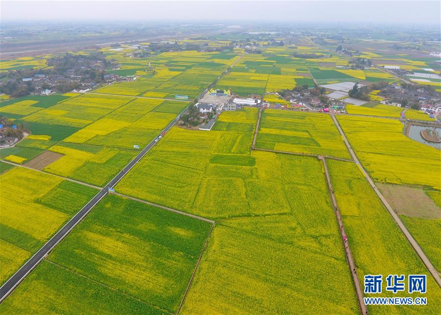 這是無人機(jī)航拍的廣漢市油菜花田(3月6日攝)。 新華社記者劉坤攝