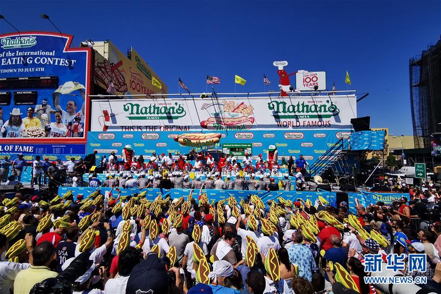 7月4日,在美國紐約康尼島,人們觀看吃熱狗大賽。 當(dāng)日,美國紐約康尼島舉行一年一度的吃熱狗大賽。在男子組比賽中,來自加州的喬伊·切斯特納特10分鐘內(nèi)吃下71個(gè)熱狗衛(wèi)冕成功。在女子組比賽中,三木須藤10分鐘內(nèi)吃下31個(gè)熱狗,連續(xù)第六次贏得冠軍。 新華社記者 李木子 攝