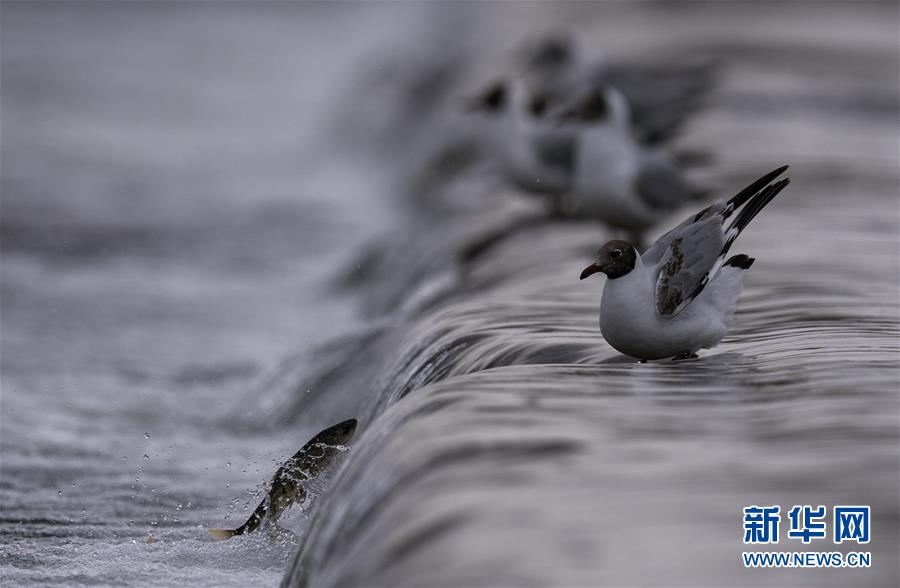 7月6日,在青海省剛察縣沙柳河里,湟魚躍起向上洄游。 新華社記者 費茂華攝