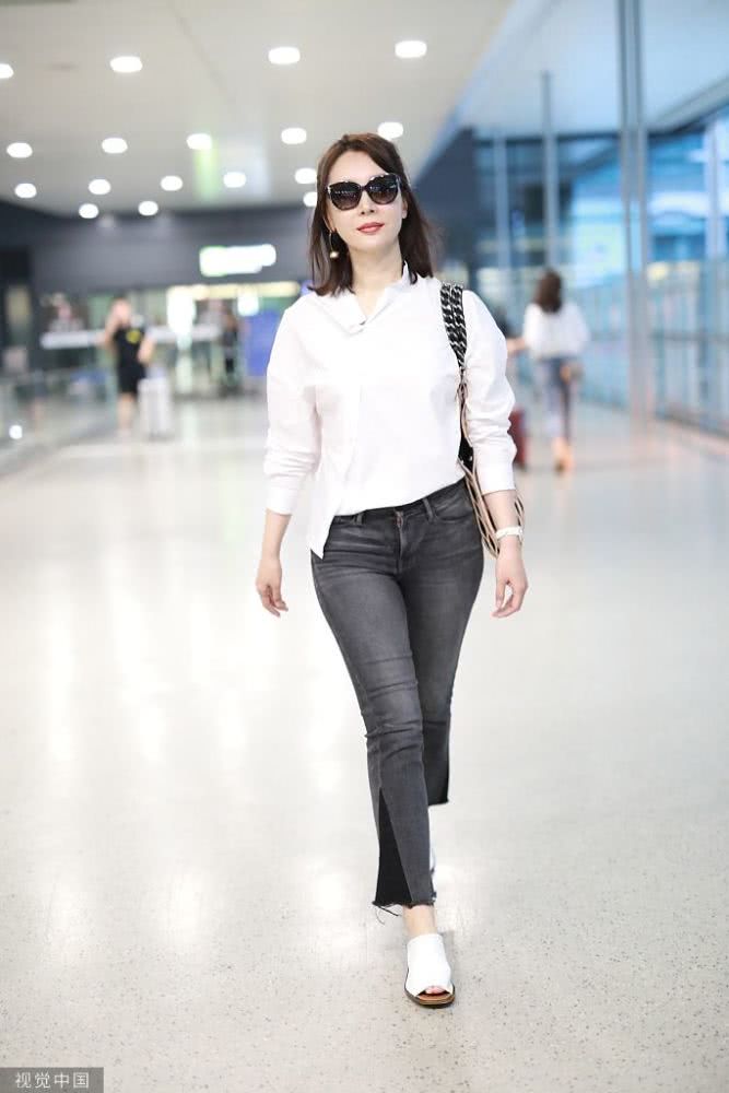 陳數(shù)穿白襯衫知性淺笑甜美迷人 架黑超拎漁網(wǎng)紋展職場(chǎng)女性魅力
