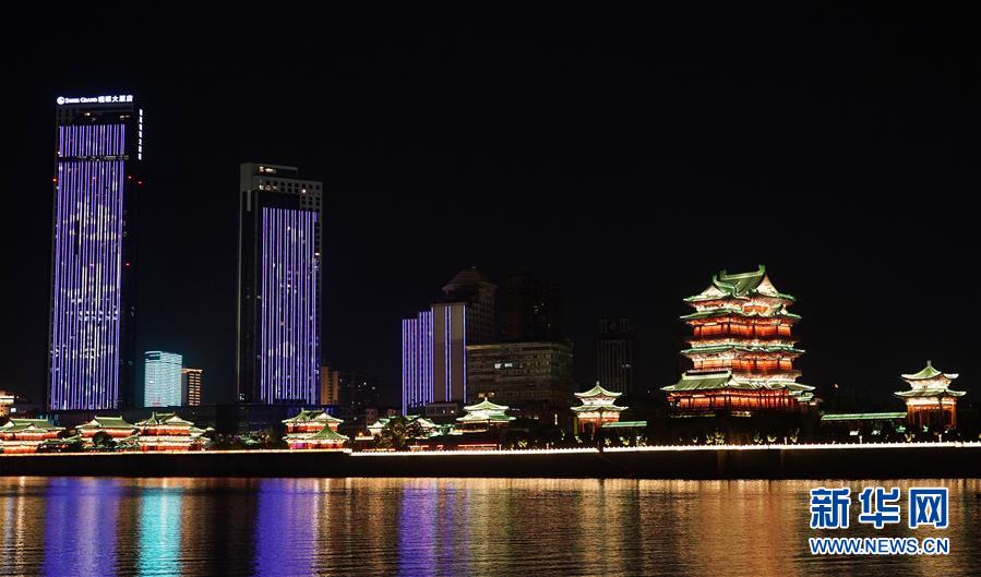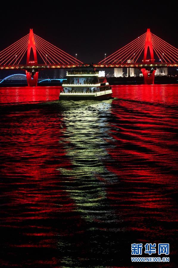 這是江西南昌贛江畔的燈光秀(8月6日攝)。 新華社記者萬象 攝