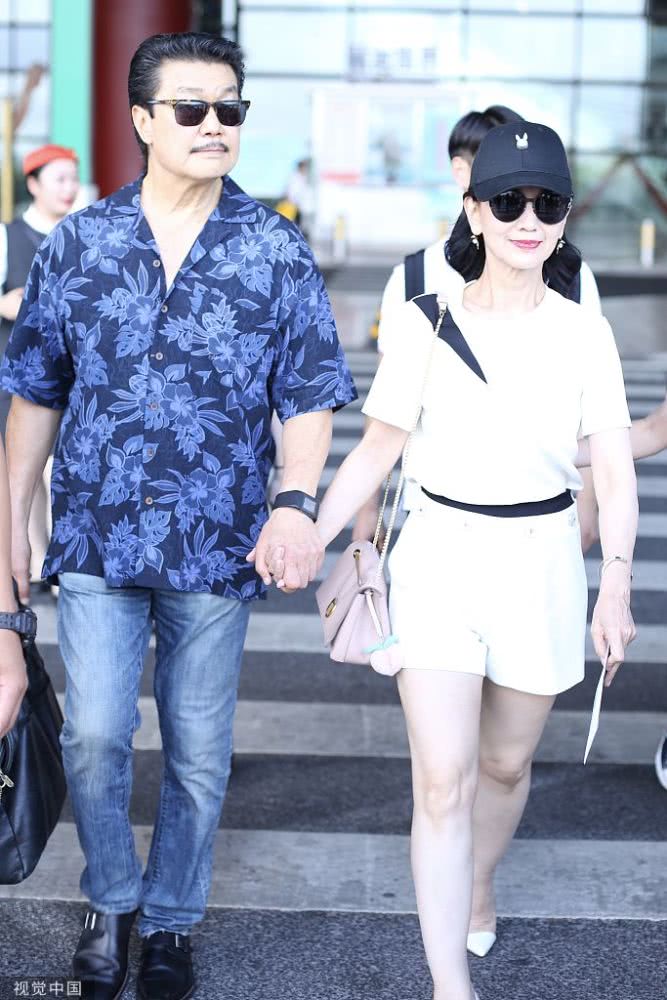 2019年8月10日,北京,趙雅芝與老公黃錦燊現(xiàn)身機(jī)場(chǎng)。