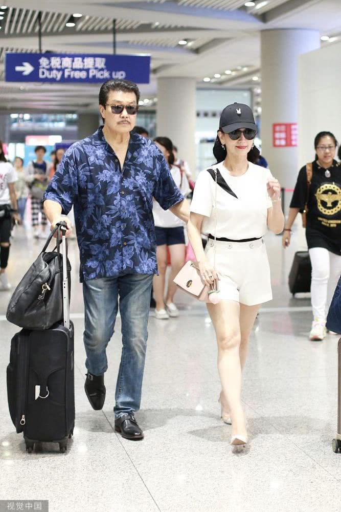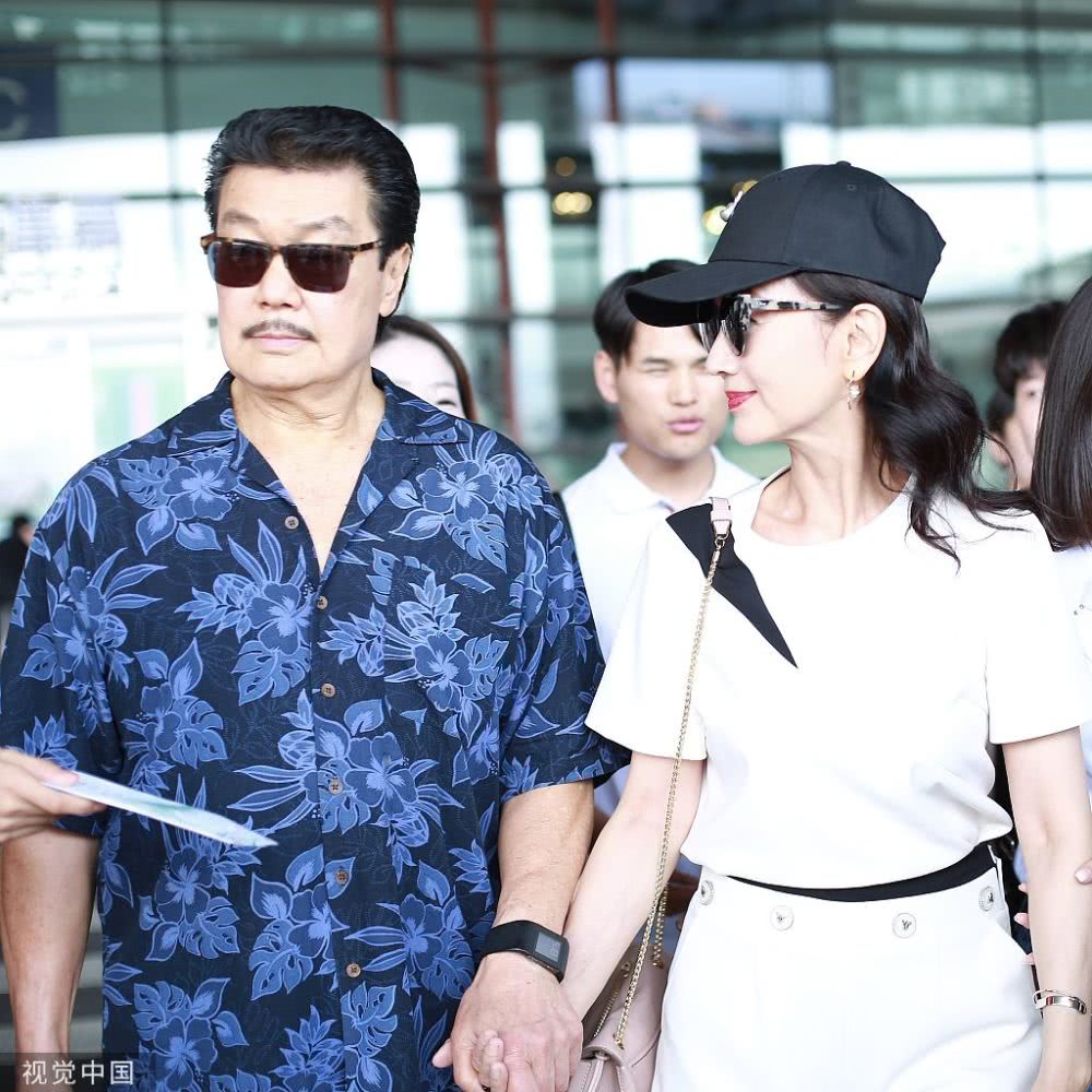 2019年8月10日,北京,趙雅芝與老公黃錦燊現(xiàn)身機場。