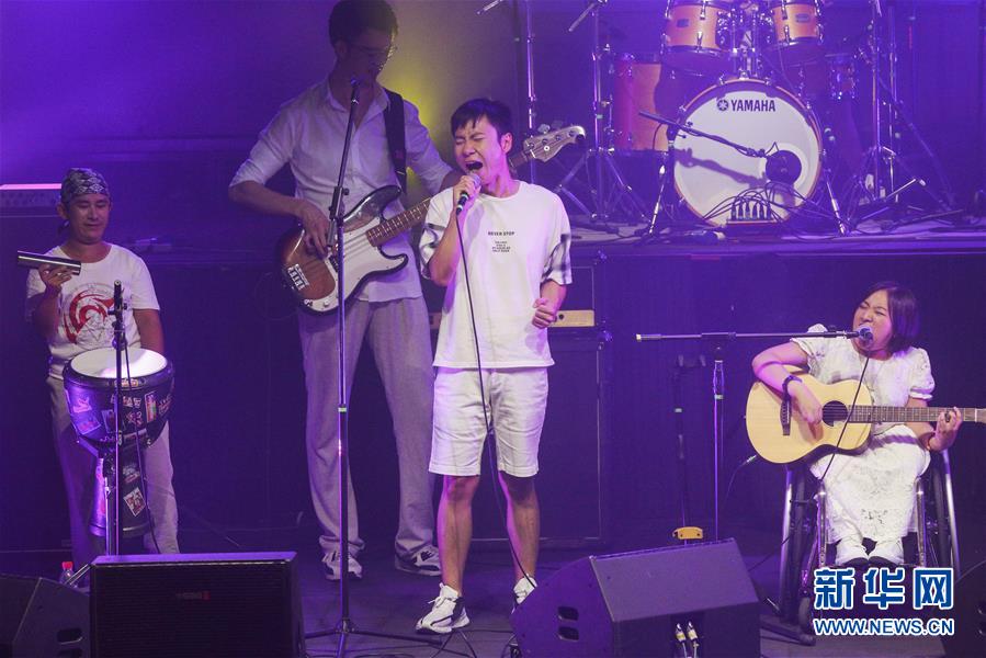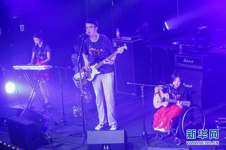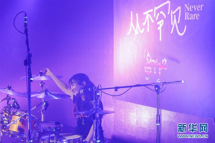 8月14日,8772樂隊成員謝航程在演唱會上表演。新華社記者張玉薇攝