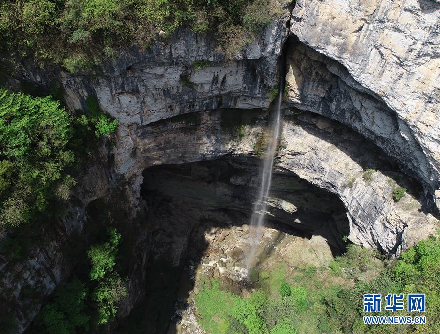 4月22日無人機拍攝的地洞河天坑。 新華社記者 張博文 攝