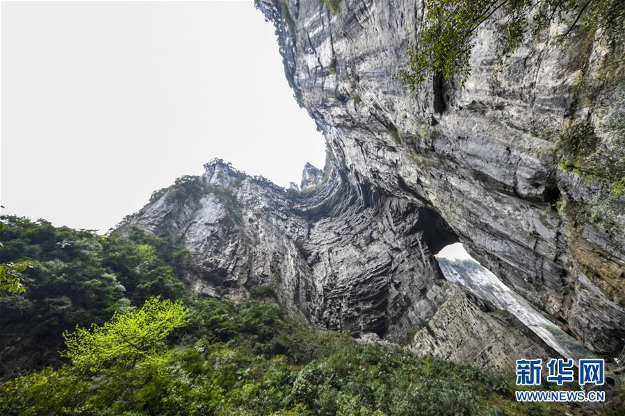 這是在天生三橋景區(qū)拍攝的神鷹天坑景觀(3月27日攝)。 隨著天氣轉(zhuǎn)暖,重慶武隆天生三橋景區(qū)風(fēng)景如畫,氣勢磅礴的天生石橋和綠意盎然的山林相映成趣,吸引眾多游客前來踏春賞景。 新華社記者劉潺攝