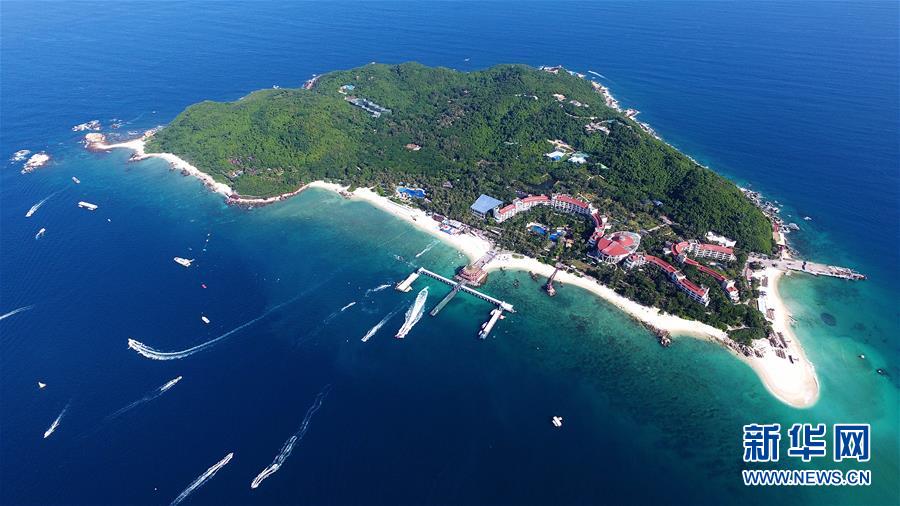 這是三亞蜈支洲島景區(qū)(2018年8月4日無人機(jī)拍攝)。新華社記者郭程攝