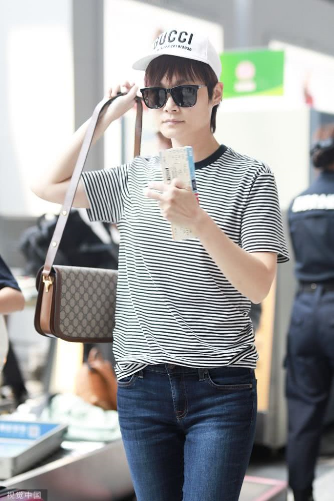 李宇春條紋裝扮現(xiàn)身機(jī)場,青春活力,人氣爆棚