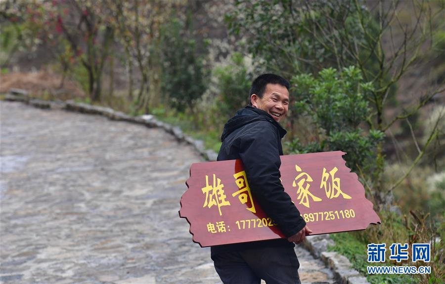 龍革雄在領(lǐng)取農(nóng)家樂牌匾(3月5日攝)。 新華社記者 黃孝邦 攝
