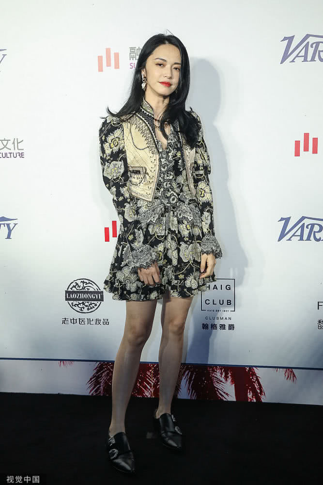 女演員姚晨亮相,穿黑白泡泡袖印花連衣裙,戴項鏈優(yōu)雅迷人